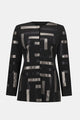 Elevate your wardrobe with this striking Joseph Ribkoff swing jacket, where contemporary design meets everyday practicality. The luxurious faux suede construction pairs beautifully with an eye-catching abstract print, while the notched collar and decorative snaps add refined detail. Three-quarter sleeves provide the perfect balance of coverage and style, complemented by a distinctive decorative zipper tape running down the front. Functional pockets keep your essentials close, and the lined interior ensures comfort throughout the day. A single hook and eye closure completes this versatile piece that transitions effortlessly from casual outings to more polished occasions.