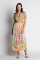 Step into effortless elegance with the LulaSoul Pellicano Dress, crafted from luxurious 100% satin modal for a silky, lightweight feel. Designed in Australia, this digitally printed beauty features a flattering collar with a buttoned tab front, elbow-length wide raglan sleeves, and a relaxed knee-length fit. The gathered tiered skirt adds flow and movement, while side pockets bring everyday practicality. Delicate matte gold micro-piping inserts provide a subtle touch of sophistication, making this dress perfect for both casual days and special occasions.