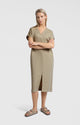 This flowy shirt dress is made from a lightweight crinkle fabric and features a relaxed fit. It has a classic collar, short folded sleeves, and a full-length button closure. Side slits and pockets add extra comfort and a casual touch. Perfect for an effortless yet stylish look. The model is 173 cm and wears size 36.